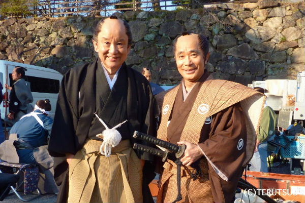 奈良・大和郡山城ロケで、堺の廻船問屋・大海屋庄兵衛役の逢坂じゅんさんと。