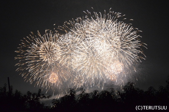 山形市西部、須川河川敷での山形花火大会。
