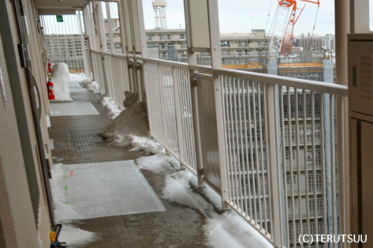 マンション14階の廊下にブリザードが吹き、角々には小さな吹きだまりができるほどだった。